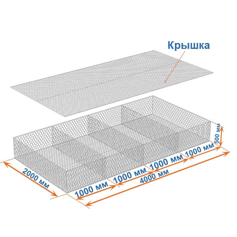 Габион матрац  ГСИ-М 4х2х0,5 оцинкованный, Ø проволоки 2,4мм, размер ячейки 6х8 см фото